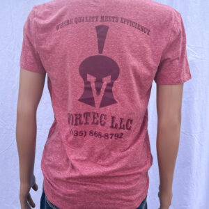 $30.00100% Cotton T-Shirt with Red Vortec LLC Logo on front and back. Colors: Red, Orange, Green, Blue.